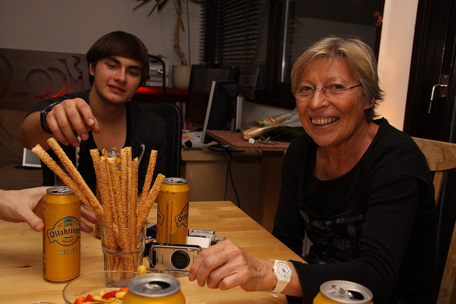 ... wär da nicht das laange Vermissen, an solche Abschiedsfeiern könnt man sich gwöhnen! ... vielen Dank nochmal für den schönen Abend, Stephans phantastische Kocherei, die große Alibert-Debatte mit dem rosa Weihnachtsmann, Lacherei, Singerei und Christbaumbehang, das Erörtern großer Beziehungen und der generell wohligen Stimmigkeit ... und nochmal special thanx an Christa und Peter, ohne Euch würds den Buben ja nicht geben! ;o) |